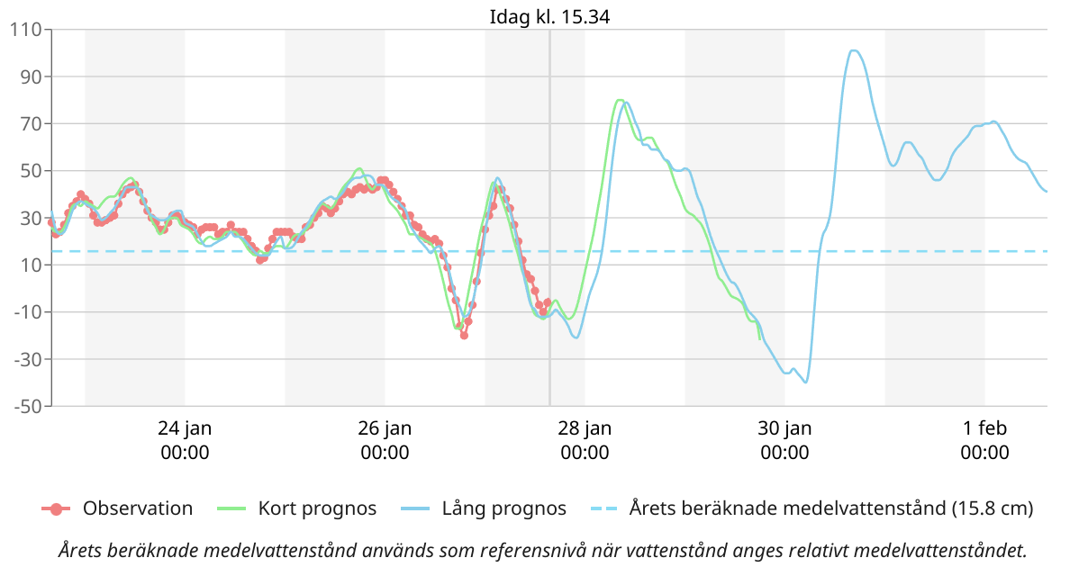 Blåsten gör att vattnet i Öresund pendlar kraftigt. De närmsta dygnen blir det några toppar längst kusten som kan medföra problem. Så håll koll på kustnära byggnader, båtar och annat som kan påverkas av de förhöjda nivåerna. Du kan se nivåerna på den här kartasidan på SMHI. Klicka på din närmsta mätstation.