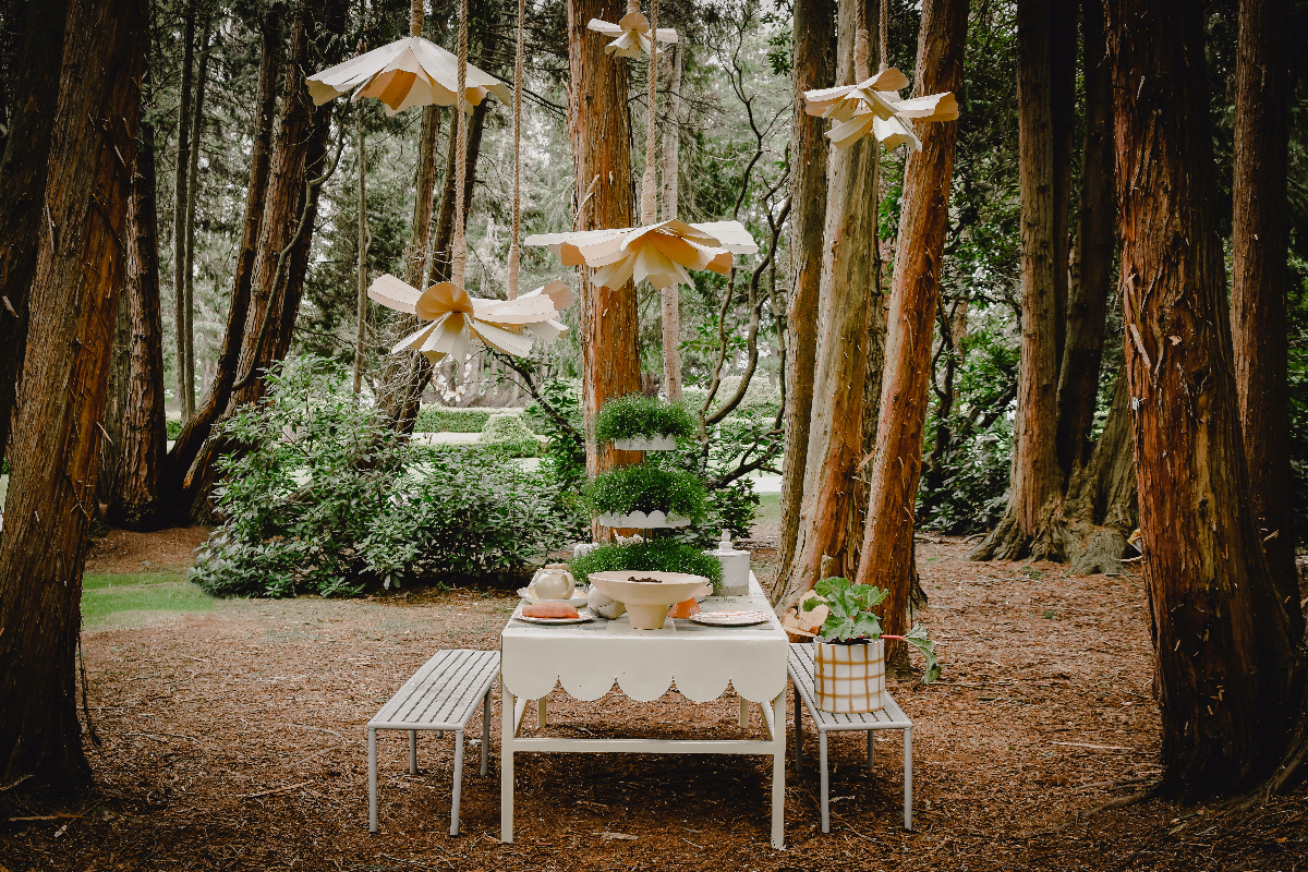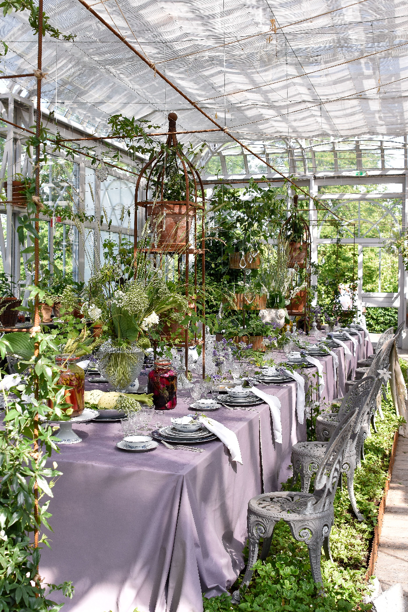 Micael Bindefeld, festarrangör, inspiratör och växtälskare dukar upp till fest för sina gäster i Norrvikens gröna växthus.