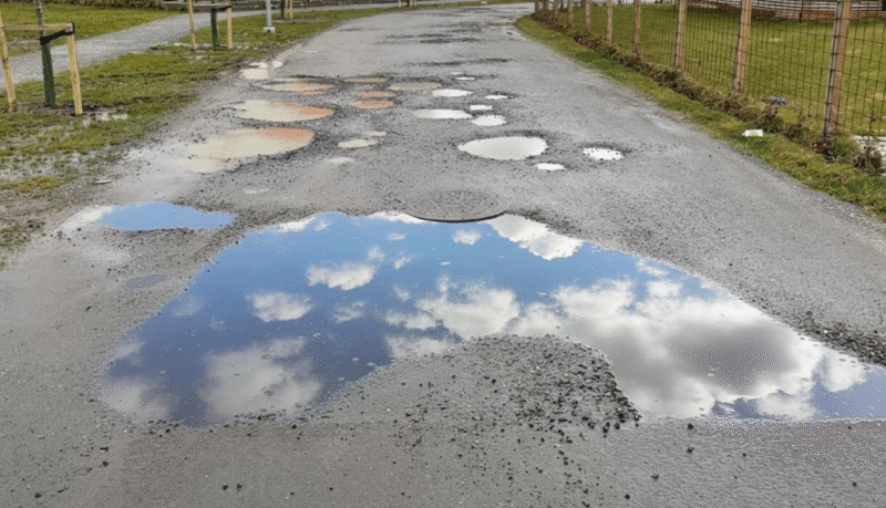 En oberoende besiktning som föreningen låtit utföra visar på en lång rad allvarliga fel. Protokollet beskriver en vägbana med ”en omfattande mängd stora och djupa potthål”, stående vatten och otillräcklig dränering. Diken eller dräneringsledningar som specificerats i ursprungshandlingarna har aldrig byggts. Situationen är så allvarlig att 85 procent av de planterade träden bedöms som döda eller döende, troligtvis på grund av syrebrist från de konstanta vattensamlingarna.